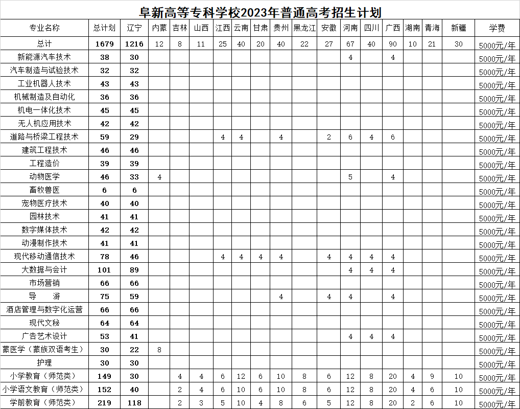 阜新高等??茖W校2025年單招專業(yè)及招生計劃...