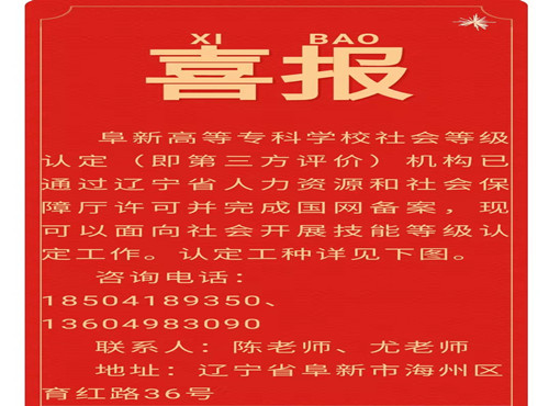 遼寧省人力資源和社會(huì)保障廳關(guān)于同意阜新高等??茖W(xué)校開展職業(yè)技能等級(jí)認(rèn)定工作的函阜新高等專科學(xué)校: 根據(jù)《人力資源社會(huì)保障部關(guān)于改革完善技能人才評(píng)價(jià)制度的意見》(人社部發(fā)〔201990號(hào))...