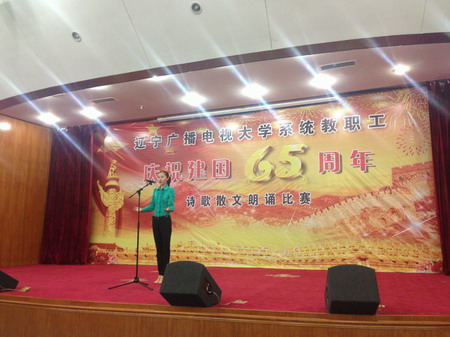 9月26日,校工會主席范玉珍、電大工作部副主任崔英芬一行7人趕赴沈陽參加遼寧廣播電視大學系統(tǒng)教職工慶祝建國65周年詩歌散文朗誦比賽。