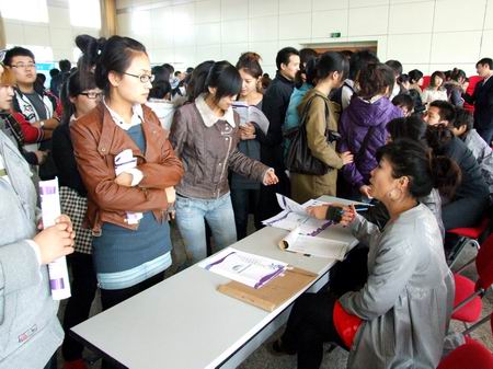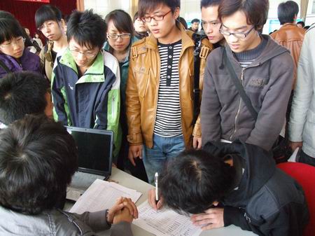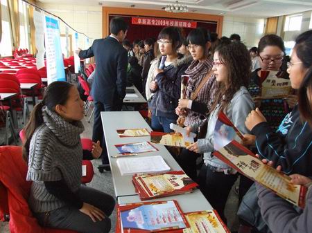 1029日下午,學校報告廳內人頭攢動,這里正在舉行2009年校園招聘會。為了促進大學生積極就業(yè),拓寬畢業(yè)生就業(yè)渠道,為同學們搭建就業(yè)平臺,校就業(yè)指導服務中心通過多方聯(lián)系與溝通,把十余家用人單位請到學校來,選擇他們所需要的畢業(yè)生。前來招聘的用人單位和近千名應聘學生使初冬的校園變得熱鬧起來。