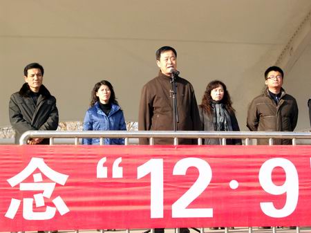 黨委副書(shū)記王占清為比賽致開(kāi)幕詞。他希望參賽的全體運(yùn)動(dòng)員通過(guò)此次比賽向“一二·九”運(yùn)動(dòng)中的青年學(xué)生學(xué)習(xí),激發(fā)愛(ài)國(guó)熱情,勤奮刻苦學(xué)習(xí),掌握本領(lǐng),為建設(shè)國(guó)家做出青年人的貢獻(xiàn)。副校長(zhǎng)李彥平宣布本次比賽開(kāi)始。