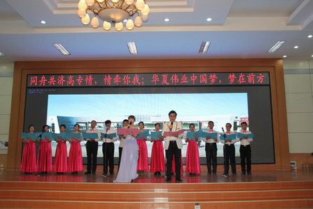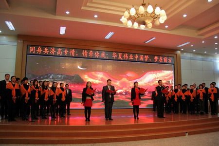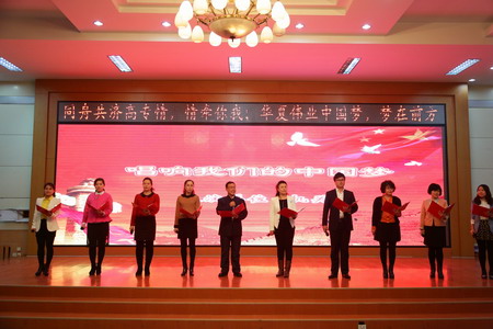 20141230日下午,校五樓報告廳流光溢彩、座無虛席。由校工會主辦、人文系承辦的放飛中國夢新年詩會在這里隆重舉行。