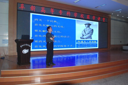 5月19日,學(xué)生處舉辦了阜新高專國學(xué)講堂第四場國學(xué)講座。副校長王立宏、學(xué)生處處長畢燁明、人文系主任王新、公建系主任曾麗華、學(xué)生處副處長姚雷及工程系、師范部、農(nóng)牧系、綜職部400余名師生聆聽了講座。講座由科研處處長武艷娟教授主講,學(xué)生處處長畢燁明主持。