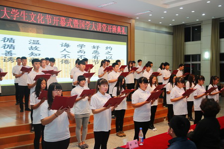 我校2015年大學(xué)生文化節(jié)開幕式暨國學(xué)講堂開班典禮拉開了為期一個多月的大學(xué)生文化節(jié)的帷幕。