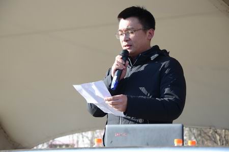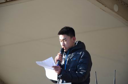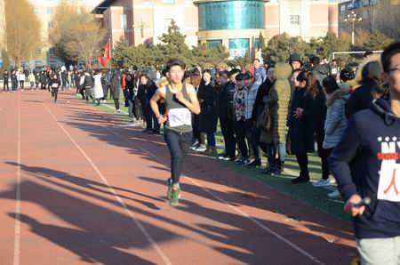 本次比賽全程達(dá)16200米,共吸引了全校10個(gè)系部,200余人參加。在團(tuán)委副書記佟欣宣布活動(dòng)開始后,各系部代表隊(duì)相繼入場。之后,黨委宣傳統(tǒng)戰(zhàn)部部長王君子為比賽致辭,他首先對“一二·九”學(xué)生運(yùn)動(dòng)作了短暫的回顧,勉勵(lì)同學(xué)們以“國家興亡,匹夫有責(zé)”的主人翁責(zé)任感,傳承革命傳統(tǒng),取得更大成績。公建系16道橋?qū)I(yè)劉淼同學(xué)代表運(yùn)動(dòng)員發(fā)言。隨著王立宏副校長一聲令下,比賽正式開始。
