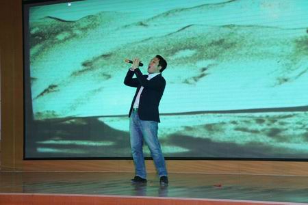 伴著通紅的爆竹、吉祥的福袋與喜氣洋洋的舞蹈,由校黨委書記陳磊、校長趙瑞江等領(lǐng)導(dǎo)班子全體成員演唱的歌曲福到春來表達(dá)了我校教工喜迎新年的美好心愿。其中穿插的中層干部們的原創(chuàng)RAP演唱更是別出心裁,別具一格,把我校一年來的成績、變化囊括其中,節(jié)奏十足。人文系支部帶來的原創(chuàng)配樂詩朗誦《我與你—致高?!氛宫F(xiàn)濃厚的人文精神,男女教師攜手娉婷款款走來,帶著我們走進(jìn)了詩的世界,更表達(dá)了對高專的熱愛。工程系的喜劇舞蹈則是延續(xù)其以往的歡快風(fēng)格,為即將到來的雞年增添了喜樂元素,大家模仿小雞的動(dòng)作讓現(xiàn)場觀眾忍俊不禁。由機(jī)械系青年教師白洋帶來的獨(dú)唱《天邊》渾厚優(yōu)美,仿佛把現(xiàn)場觀眾帶到了一望無際的大草原,欣賞天邊美景。