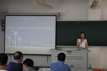 為了提升我校學(xué)生的創(chuàng)新創(chuàng)業(yè)能力,了解創(chuàng)辦新企業(yè)相關(guān)手續(xù)的辦理事宜,6月28日下午2點,就業(yè)中心與校企辦共同邀請阜新市行政服務(wù)中心綜合管理科工作人員走進高專專題宣講在1號樓1422教室舉行,共有來自全校8個系部的70余名學(xué)生參加了本次宣講活動。