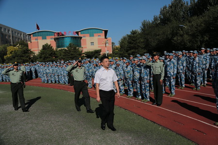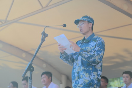 朝陽某預(yù)備役首長(zhǎng)賈祥贊講話,他對(duì)新生飽滿振奮的精神狀態(tài)給予贊揚(yáng)。他希望同學(xué)們以這次軍訓(xùn)為起點(diǎn),在今后的學(xué)習(xí)和生活中取得新的更大的進(jìn)步!