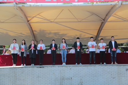 獲獎(jiǎng)學(xué)生代表上臺(tái)頒獎(jiǎng)