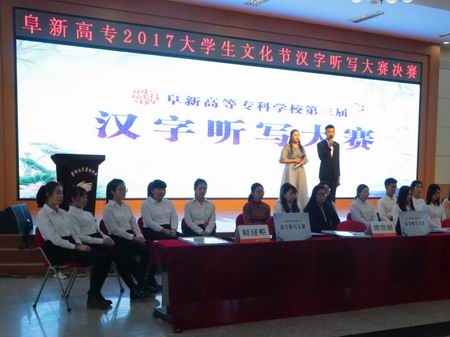書寫規(guī)范漢字,傳承傳統(tǒng)文化。2017年12月5日下午,我校在一號(hào)樓五樓報(bào)告廳舉行漢字聽寫賽。校黨委副書記呂東春、副校長(zhǎng)魏彤光,黨委宣傳統(tǒng)戰(zhàn)部部長(zhǎng)王君子、學(xué)生處處長(zhǎng)趙宏,團(tuán)委副書記佟欣,以及進(jìn)入決賽的各支代表隊(duì)的系部書記與同學(xué)們一起觀看了比賽。擔(dān)任該比賽評(píng)委的是科研處處長(zhǎng)武艷娟、人文系主任王新老師以及師范部語(yǔ)文教研室邢麗華。