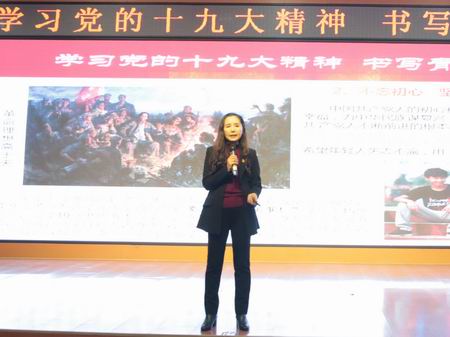 講座上,黨委副書(shū)記呂東春由淺入深,結(jié)合實(shí)際,解讀黨的十九大主題,重點(diǎn)解析“不忘初心”、“中國(guó)夢(mèng)”、習(xí)近平新時(shí)代中國(guó)特色社會(huì)主義思想的精神實(shí)質(zhì)和豐富內(nèi)涵,用青年學(xué)生的視角看十九大報(bào)告,解答青年對(duì)黨的十九大報(bào)告提問(wèn),闡釋十九大報(bào)告與青年的關(guān)系,引導(dǎo)廣大青年一代自覺(jué)用習(xí)近平新時(shí)代中國(guó)特色社會(huì)主義思想武裝頭腦,不忘成長(zhǎng)初心,牢記時(shí)代使命,在實(shí)現(xiàn)中國(guó)夢(mèng)的生動(dòng)實(shí)踐中放飛青春夢(mèng)想,在為人民利益的不懈奮斗中書(shū)寫(xiě)人生華章。呂書(shū)記指出,黨的十九大宣示中國(guó)特色社會(huì)主義進(jìn)入了新時(shí)代,賦予了這個(gè)新時(shí)代極為豐富的思想內(nèi)涵。立足新時(shí)代,就要有新氣象新作為。與這個(gè)新時(shí)代共同成長(zhǎng)的一代青年最值得期待,在實(shí)現(xiàn)中國(guó)夢(mèng)、強(qiáng)國(guó)夢(mèng)的生動(dòng)實(shí)踐中激揚(yáng)青春、放飛夢(mèng)想,是新時(shí)代對(duì)青年人的新要求。習(xí)近平總書(shū)記高度重視青年一代的健康成長(zhǎng),他在黨的十九大報(bào)告中再一次強(qiáng)調(diào):青年興則國(guó)家興,青年強(qiáng)則國(guó)家強(qiáng)。青年一代有理想、有本領(lǐng)、有擔(dān)當(dāng),國(guó)家就有前途,民族就有希望。要求全黨要關(guān)心和愛(ài)護(hù)青年,為這一代青年人實(shí)現(xiàn)人生出彩搭建舞臺(tái)。中國(guó)特色社會(huì)主義新時(shí)代秉承歷史使命,描畫(huà)了未來(lái)30年建設(shè)中國(guó)特色社會(huì)主義現(xiàn)代化強(qiáng)國(guó)的美好愿景。這一代青年人恰是書(shū)寫(xiě)這一段美好歷程的實(shí)踐者、奮進(jìn)者和搏擊者。一代人有一代人的使命和責(zé)任,一代人需要有一代人的作為和擔(dān)當(dāng)。今天,實(shí)現(xiàn)中華民族偉大復(fù)興的中國(guó)夢(mèng)和強(qiáng)國(guó)夢(mèng)的歷史接力棒交到我們這一代青年人手中了。在新時(shí)代新征程中,我們這一代青年必須將“小我”之利益融匯到國(guó)家和民族利益之“大我”中。要樹(shù)立寬廣的胸襟和遠(yuǎn)大的視野,不為眼前的一點(diǎn)點(diǎn)得失計(jì)較、不畏生存發(fā)展中的艱苦和曲折。要努力做到:不斷豐富知識(shí)和文化素養(yǎng),努力磨礪自己的品性和人格。