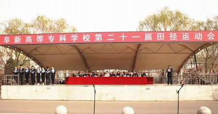 校長趙瑞江宣布我校第二十一屆田徑運動會正式開始。伴著師生共同的期待,飽滿的激情,7點30分,運動會開幕式準(zhǔn)時開始。在雄壯激昂的樂曲聲中,國旗隊、校旗隊、彩旗隊、花束隊、彩球隊、裁判員隊伍和各系代表隊依次經(jīng)過主席臺接受大會的檢閱。整齊的步伐,矯健的身姿展現(xiàn)了我?!靶薜碌Z能”的校訓(xùn)精神。體現(xiàn)了高專學(xué)生良好的精神風(fēng)貌和銳意進(jìn)取的拼搏精.