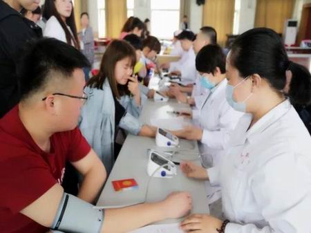 教師們與同學們一起踴躍參與到無償獻血活動中來