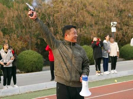 工會(huì)委員會(huì)體育委員、體育教學(xué)部主任王峰為教工講解比賽注意事項(xiàng)并發(fā)槍