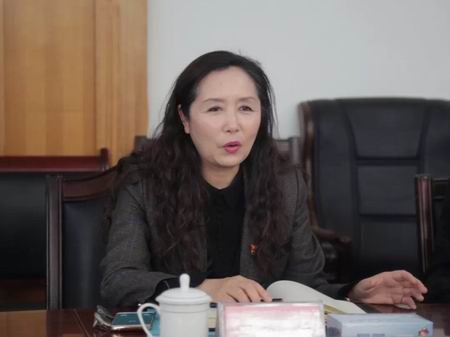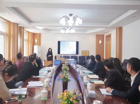 唐秀玲所長(zhǎng)向評(píng)估組匯報(bào)工作