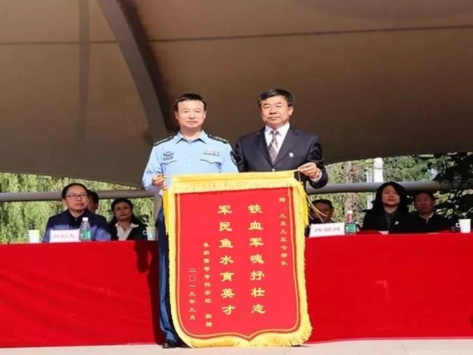 校黨委書記任志偉向承訓(xùn)部隊贈送錦旗