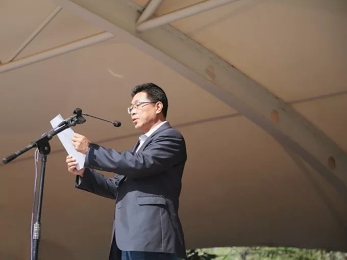 燦爛的金秋滿載著豐收的喜悅,鏗鏘的腳步孕育著嶄新的生活。9月19日,我校在主校區(qū)操場隆重舉行2019-2020學(xué)年度開學(xué)典禮暨新生軍訓(xùn)閉營式??哲娔巢空妒莱?,遼寧省蒙醫(yī)醫(yī)院副院長齊寶山,我校黨委書記任志偉、黨委副書記、校長呂東春,副校長王立槐、副校長王立宏、紀(jì)委書記劉振宇、副校長魏彤光出席了典禮。各職能部門、各系領(lǐng)導(dǎo)、承訓(xùn)部隊教官、教師代表、以及全校學(xué)生等參加了典禮。典禮由紀(jì)委書記劉振宇主持。