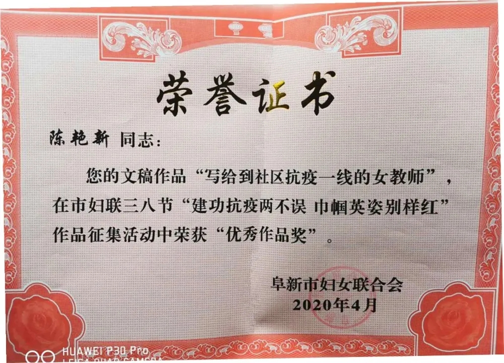 日前,由阜新市婦女聯(lián)合會(huì)主辦的“建功抗疫兩不誤 巾幗英姿別樣紅”三八節(jié)網(wǎng)上過(guò)節(jié)有獎(jiǎng)?wù)骷顒?dòng)圓滿落下帷幕。此次有獎(jiǎng)?wù)骷顒?dòng)分為文稿、書(shū)畫(huà)、攝影、微視頻四個(gè)板塊,征集到的作品題材豐富,內(nèi)容積極向上,充分的展示了我市婦女姐妹在家庭生活中的獨(dú)特作用,在轉(zhuǎn)型振興中的巾幗風(fēng)采,及對(duì)此次抗疫行動(dòng)的美好祝愿。我校外語(yǔ)系教師陳艷新創(chuàng)作的組詩(shī)《寫(xiě)給到社區(qū)抗議一線的女教師》榮獲“優(yōu)秀作品獎(jiǎng)”。