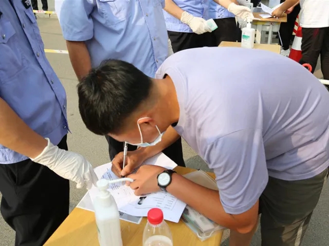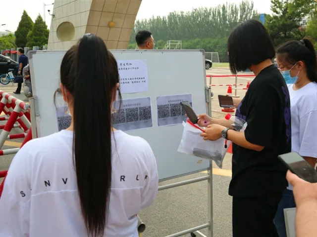 考生按照流程掃描健康碼、測(cè)試體溫、填寫安全考試承諾書
