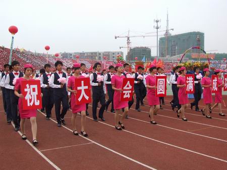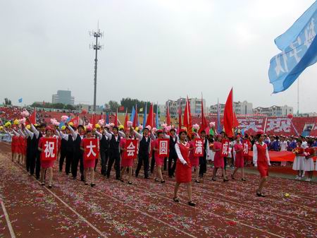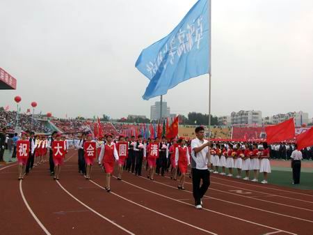 93,阜新市第七屆運動會在市體育場隆重開幕。由我校59名禮儀隊員組成的方隊參加了開幕式。經過幾天的訓練,身著靚麗的服裝,揮舞著花束,步伐整齊的禮儀隊員們氣宇軒昂地經過主席臺,展示了高專學子良好的精神面貌和時代風采,給全場觀眾留下了深刻的印象。