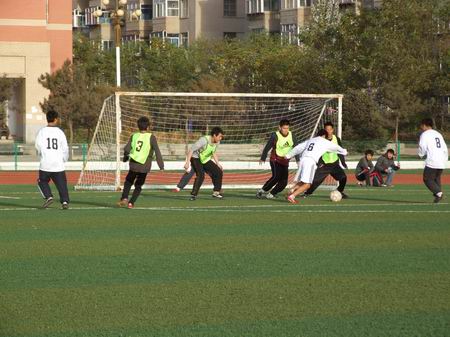 本次聯(lián)賽共有工程系、計信系、文法系、藝術系、蒙文系、農職院、中專部七支隊伍報名參賽。首場比賽在工程系與文法系之間展開。工程系的男生比例較大,因此足球愛好者也較多。而文法系的男生總數(shù)則遠遠少于工程系,雖然如此,他們還是選出了精兵強將沉著應戰(zhàn)。比賽一開始,工程系隊員就展開了猛力攻勢,而文法系隊員則以其頑強的防守一次次化險為夷。場上,雙方隊員都使出了渾身解數(shù),緊密地配合、凌厲地進攻、嚴密地防守;場下,兩支啦啦隊不失時機的為球員們加油打氣、吶喊助威。觀眾們也是時而為工程系的精彩射門歡呼吶喊,時而為文法系錯失進球良機唏噓不已。經過90分鐘的鏖戰(zhàn),實力較強的工程系最終戰(zhàn)勝了對手,取得了此次聯(lián)賽首場比賽的勝利。