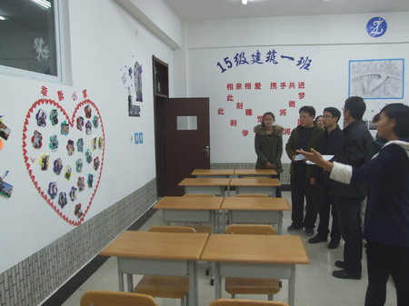 營(yíng)造高雅的教室文化,發(fā)揮班級(jí)環(huán)境育人功能,學(xué)生處承辦了大學(xué)生文化節(jié)之教室設(shè)計(jì)大賽。大賽于10月下旬開(kāi)始,至11月上旬結(jié)束。11月14日下午,副校長(zhǎng)王立宏,學(xué)生處處長(zhǎng)畢燁明,團(tuán)委書(shū)記王君子,黨委工作部副部長(zhǎng)隋潮,副處長(zhǎng)趙宏、韓慕鴻、姚雷及各系部書(shū)記對(duì)全校各系部參賽教室進(jìn)行了參觀、評(píng)比。 評(píng)委們來(lái)到各個(gè)班級(jí),對(duì)教室衛(wèi)生進(jìn)行了評(píng)比,對(duì)班徽、班訓(xùn)、班旗做出了評(píng)價(jià),對(duì)教室整體設(shè)計(jì)進(jìn)行了檢查。工程系同學(xué)利用廢棄的礦泉水瓶和彩紙繪制了裝飾品,即美觀又環(huán)保;師范部同學(xué)用親手折疊的千紙鶴點(diǎn)綴著班級(jí);機(jī)械系把同學(xué)們的生活照片張貼在墻上,向人們講述著班級(jí)的故事和同窗的友情;公建系利用紙殼做成了書(shū)架和班訓(xùn)標(biāo)語(yǔ);計(jì)信系用自己設(shè)計(jì)的漫畫(huà)裝飾班級(jí);人文系15文秘班還創(chuàng)作了原創(chuàng)班歌;有的班級(jí)還有講解員。富有創(chuàng)意的教室設(shè)計(jì),彰顯了同學(xué)們的才華,展現(xiàn)了良好的班風(fēng)。經(jīng)過(guò)評(píng)委嚴(yán)格評(píng)判,人文系15文秘班、公建系15建筑班、財(cái)經(jīng)系會(huì)計(jì)14—5班、機(jī)械系15機(jī)制2班、財(cái)經(jīng)系營(yíng)銷15-1班、人文系酒店管理班榮獲一等獎(jiǎng)。 本次活動(dòng),同學(xué)們一起設(shè)計(jì)、一起制作,心往一處想,勁往一處使,美化了班級(jí),促進(jìn)了班級(jí)建設(shè),增強(qiáng)了班級(jí)凝聚力。
