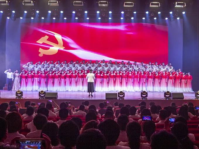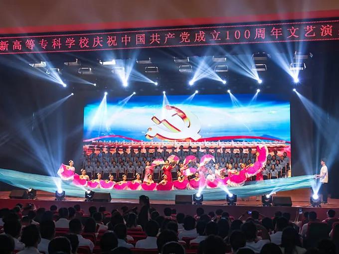 謳歌百年輝煌,奏響時(shí)代樂章。阜新高等??茖W(xué)校慶祝中國共產(chǎn)黨成立100周年文藝演出于6月30日下午在北校區(qū)報(bào)告廳舉行。本次大型文藝演出演員陣容強(qiáng)大,500余名師生參與演出,組建了百人教工合唱團(tuán)和百人學(xué)生合唱團(tuán),經(jīng)過近2個(gè)月的排練,整場(chǎng)演出內(nèi)容豐富多彩,以中國共產(chǎn)黨百年奮斗史為主線,分為“星火燎原”、“披荊斬棘”、“崛起東方”、“盛世歡歌”四個(gè)篇章,各篇章以大型歌舞、音詩畫、大合唱等多種表現(xiàn)形式,以情景化手段展現(xiàn)于舞臺(tái),生動(dòng)展現(xiàn)中國共產(chǎn)黨百年來帶領(lǐng)中國人民進(jìn)行革命、建設(shè)、改革的壯美畫卷,熱情謳歌中國特色社會(huì)主義進(jìn)入新時(shí)代,正昂首闊步邁向全面建設(shè)社會(huì)主義現(xiàn)代化國家的新征程。