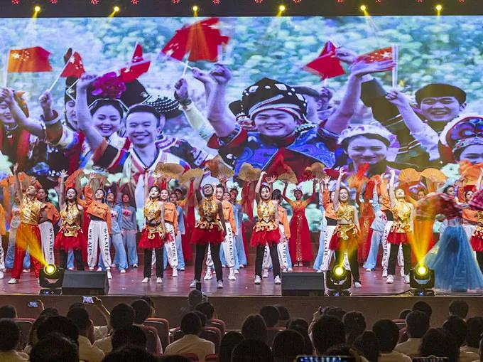第四篇章盛世歡歌,以師生合唱《少年》、百人教工大合唱《我宣誓》、《我們的新時(shí)代》、情景舞蹈《盛世歡歌》,生動(dòng)展現(xiàn)了一幅新時(shí)代的壯闊圖景,展示了新時(shí)代民族復(fù)興的壯麗畫卷,描繪從富起來正走向強(qiáng)起來的歷史巨變,感召中華兒女砥礪奮進(jìn)、啟航新征程。