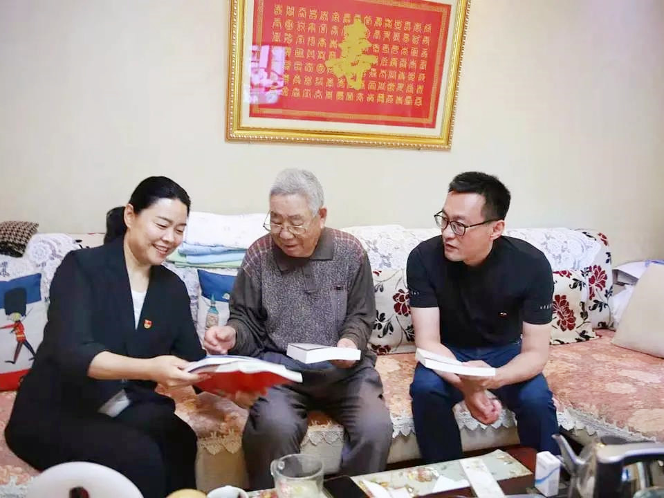 笑語歡聲憶崢嶸,暢敘幸福慶華誕。在中國(guó)共產(chǎn)黨成立100周年之際,為深入貫徹落實(shí)中央及省市委有關(guān)要求,我校開展“送關(guān)愛辦實(shí)事?遍訪離休干部”活動(dòng)。6月18日上午,老干部工作辦公室主任劉眉、組織部部長(zhǎng)周波走訪慰問了學(xué)校離休干部,為離休干部送去了政治生日禮物、黨史學(xué)習(xí)資料和養(yǎng)生書籍,感謝他們做出的貢獻(xiàn),并代表學(xué)校向他們致以親切的問候和節(jié)日祝福,切實(shí)把黨的關(guān)懷與溫暖送到老干部的心坎上。