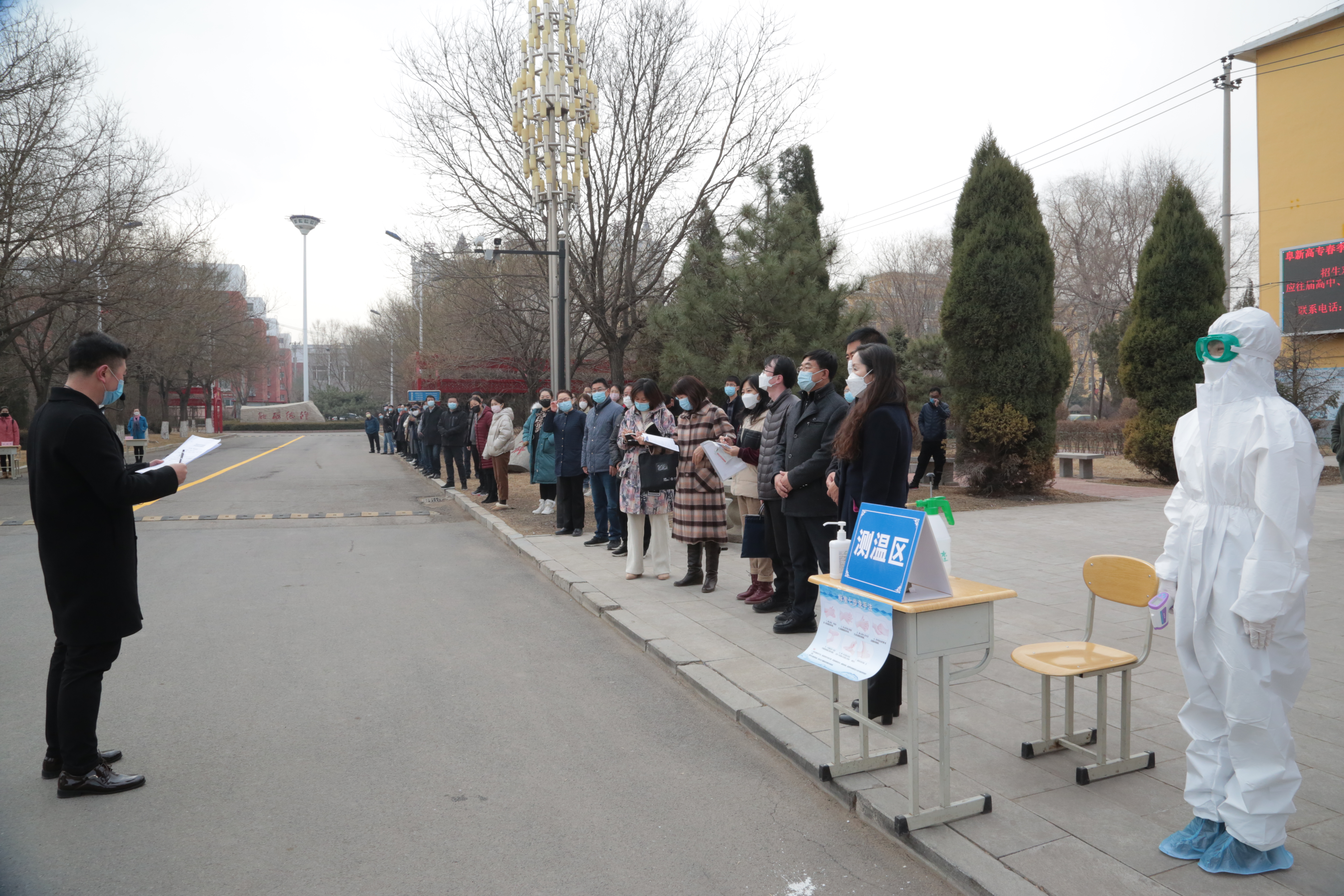 此次演練是我校應(yīng)對(duì)新冠肺炎疫情防控的重要舉措,也是對(duì)我校應(yīng)對(duì)突發(fā)公共衛(wèi)生事件實(shí)戰(zhàn)能力的一次檢驗(yàn)。演練以新生入校報(bào)到、學(xué)生就餐、校園公共環(huán)境消殺、突發(fā)疫情處置為背景,展現(xiàn)了我校疫情防控指揮部組織協(xié)調(diào)、聯(lián)動(dòng)配合的指揮機(jī)制,全面檢驗(yàn)了各部門疫情防控實(shí)際作戰(zhàn)能力。為確保本次演練規(guī)范有序開(kāi)展,我校參加疫情防控演練的教職工共有100余人。
