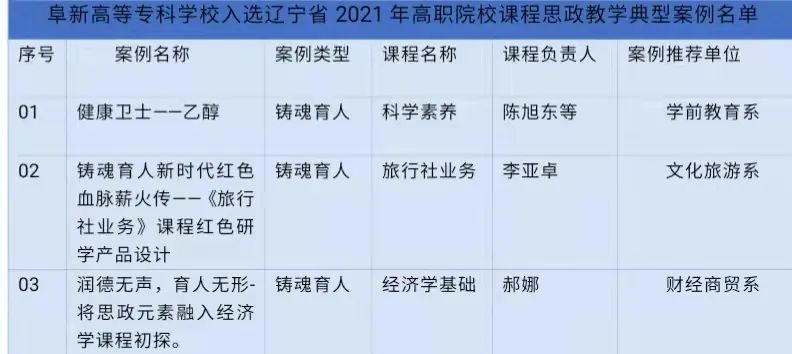近日,《遼寧省教育廳辦公室關(guān)于公布2021年遼寧省職業(yè)院校課程思政教學(xué)典型案例的通知》(遼教辦〔2022〕21號)公布,我校申報三項案例成功入選2021年遼寧省職業(yè)院校課程思政教學(xué)典型案例。