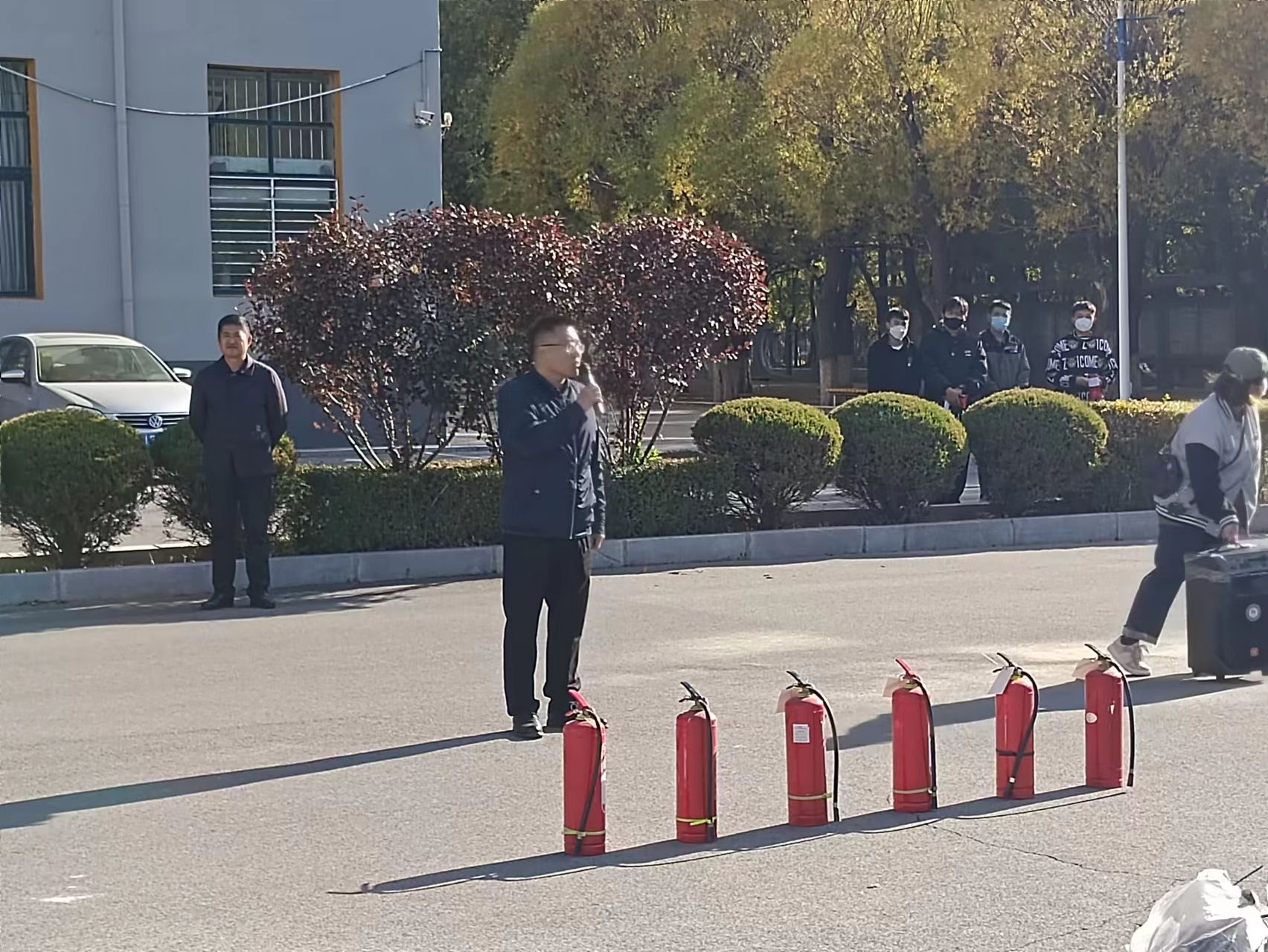 本次防火演練分為疏散、講授、實(shí)操三個(gè)部分,首先,學(xué)生們在防火警報(bào)聲中,開始從寢室疏散至操場,同學(xué)們的撤離井然有序,快速且不忙亂,都能夠在三分鐘之內(nèi)撤離到操場安全區(qū)域。隨后,在操場上,保衛(wèi)處處長蔡久洋對學(xué)生進(jìn)行了應(yīng)急防火知識講授,蔡處長表示:防火安全無小事,校園是人員聚集的地點(diǎn),一旦發(fā)生火災(zāi),后果不堪設(shè)想,同學(xué)們一定要做好安全用電,不使用大功率違章電器,不私拉電線,維護(hù)校園安全,人人有責(zé)。最后,同學(xué)們在保衛(wèi)處工作人員的指導(dǎo)下,進(jìn)行了干粉滅火器的實(shí)際操作。同學(xué)們踴躍上前,嘗試滅火器的操作,并在老師的指導(dǎo)下基本掌握了滅火器的使用方法。本次活動收效良好,不僅讓學(xué)生掌握了一定的消防知識,還學(xué)習(xí)了滅火器的操作方法,同學(xué)們表示受益匪淺。