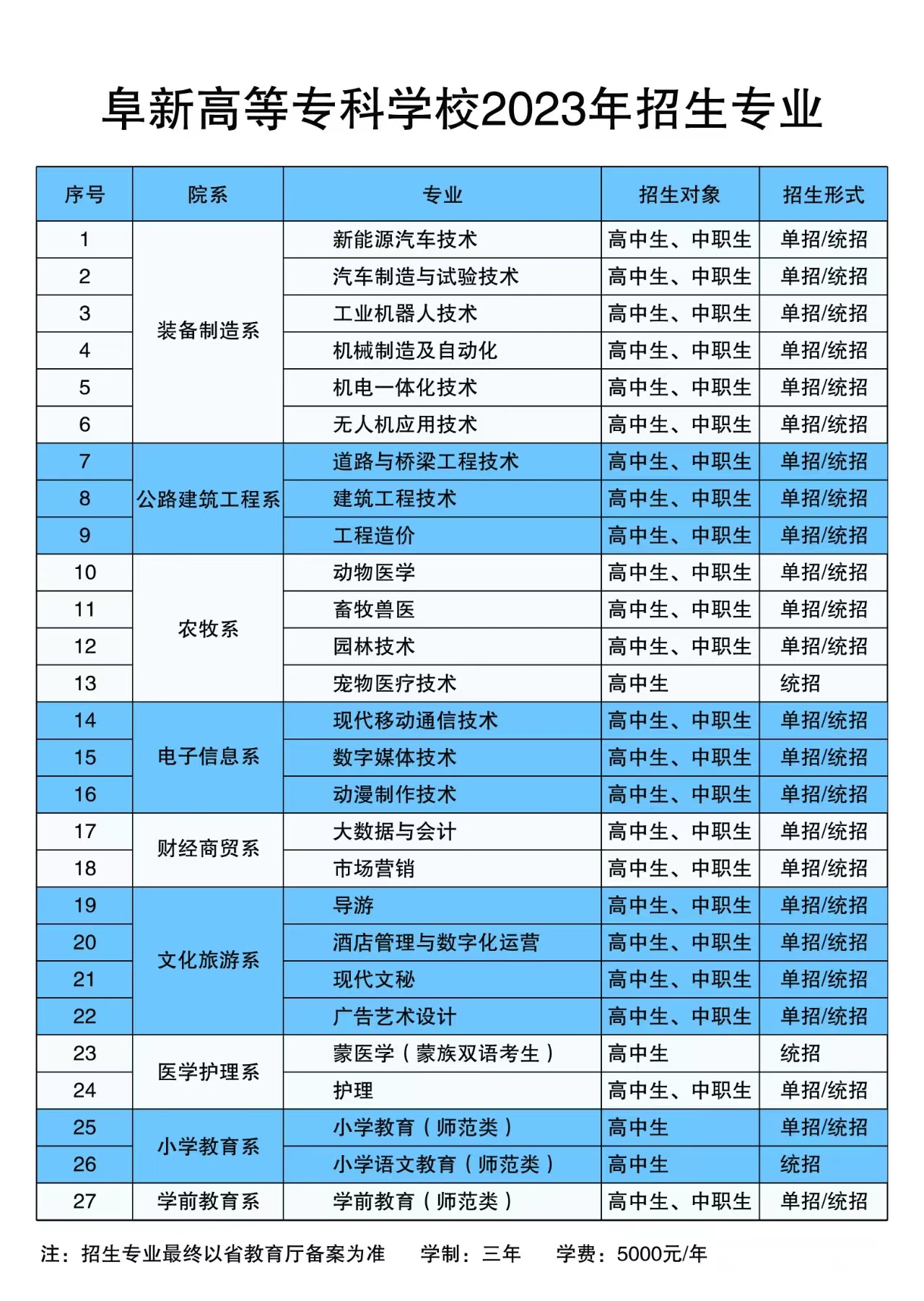 阜新高等專科學(xué)校2023年普通高考招生計(jì)劃
