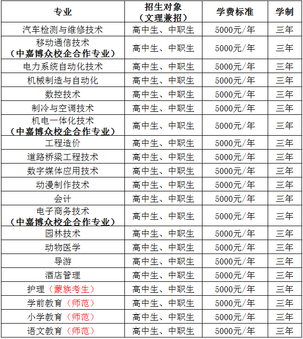 2020年單獨招生專業(yè)