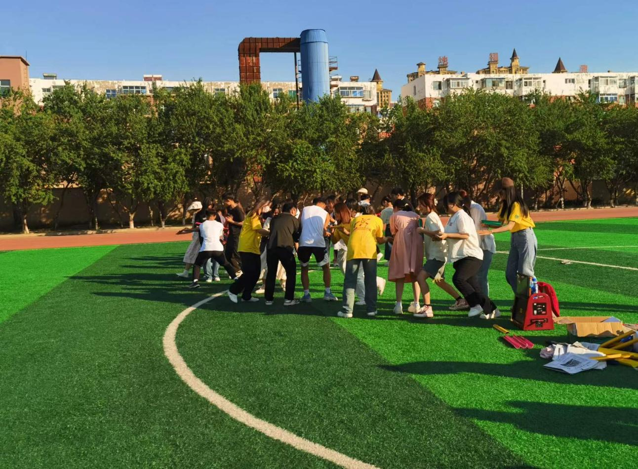 為強化學生積極體驗和積極行為,增強心理調適能力,激發(fā)內在成長動力,5月29日學生處心理教育咨詢中心以5.25心理健康活動月為契機,以“珍惜生命 擁抱青春”為導向,在南校區(qū)足球場開展百人心理素質拓展訓練活動?;顒佑尚睦斫逃稍冎行墓y鳳老師主持,李欣宇、朱穎慧老師參與此次活動。