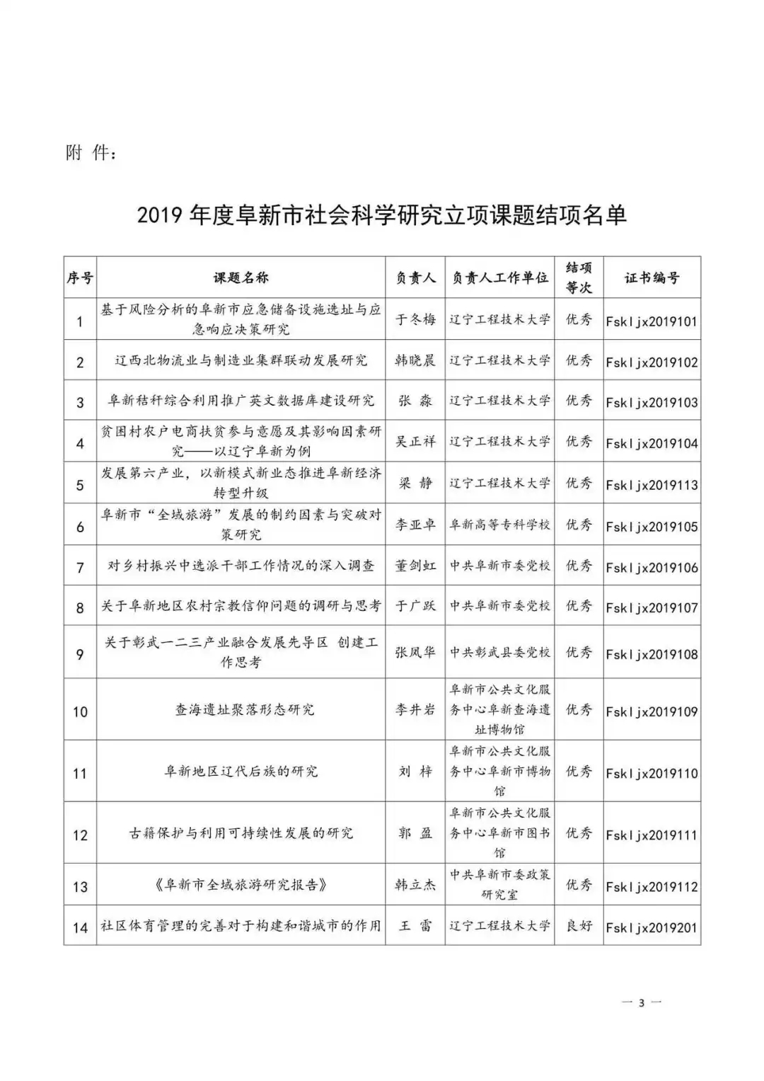 關(guān)于2019年度阜新市社會科學(xué)研究立項課題結(jié)項評審結(jié)果的通知