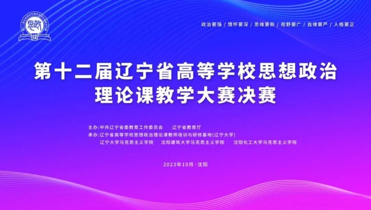 2023年10月13日,由中共遼寧省委教育工委、省教育廳主辦的第十二屆遼寧省高校思想政治理論課教學(xué)大賽決賽于沈陽圓滿收官。大賽旨在全面提高全省高校思想政治理論課教學(xué)質(zhì)量,增強(qiáng)思政課的思想性、理論性和親和力、針對性,打造一支政治強(qiáng)、情懷深、思維新、視野廣、自律嚴(yán)、人格正的思政課教師隊(duì)伍。