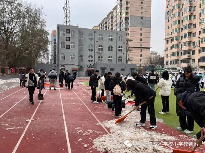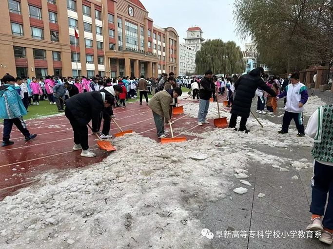 此次我系見習(xí)師生配合小學(xué)的除雪活動(dòng),是在小學(xué)校園上的一堂真實(shí)而生動(dòng)的勞動(dòng)教育實(shí)踐課,磨練了同學(xué)們的意志,也展現(xiàn)了無(wú)私奉獻(xiàn)的大美高專精神。