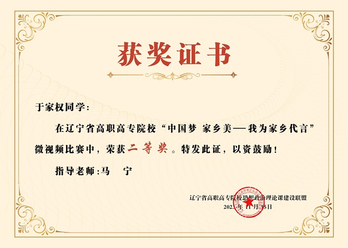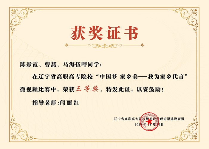 近日,由遼寧省高職高專(zhuān)院校思想政治理論課建設(shè)聯(lián)盟組織開(kāi)展的“中國(guó)夢(mèng)·家鄉(xiāng)美——我為家鄉(xiāng)代言”微視頻比賽落下了帷幕。我校思政部教師指導(dǎo)的5部參賽作品全部獲獎(jiǎng),其中二等獎(jiǎng)2項(xiàng)、三等獎(jiǎng)3項(xiàng)。