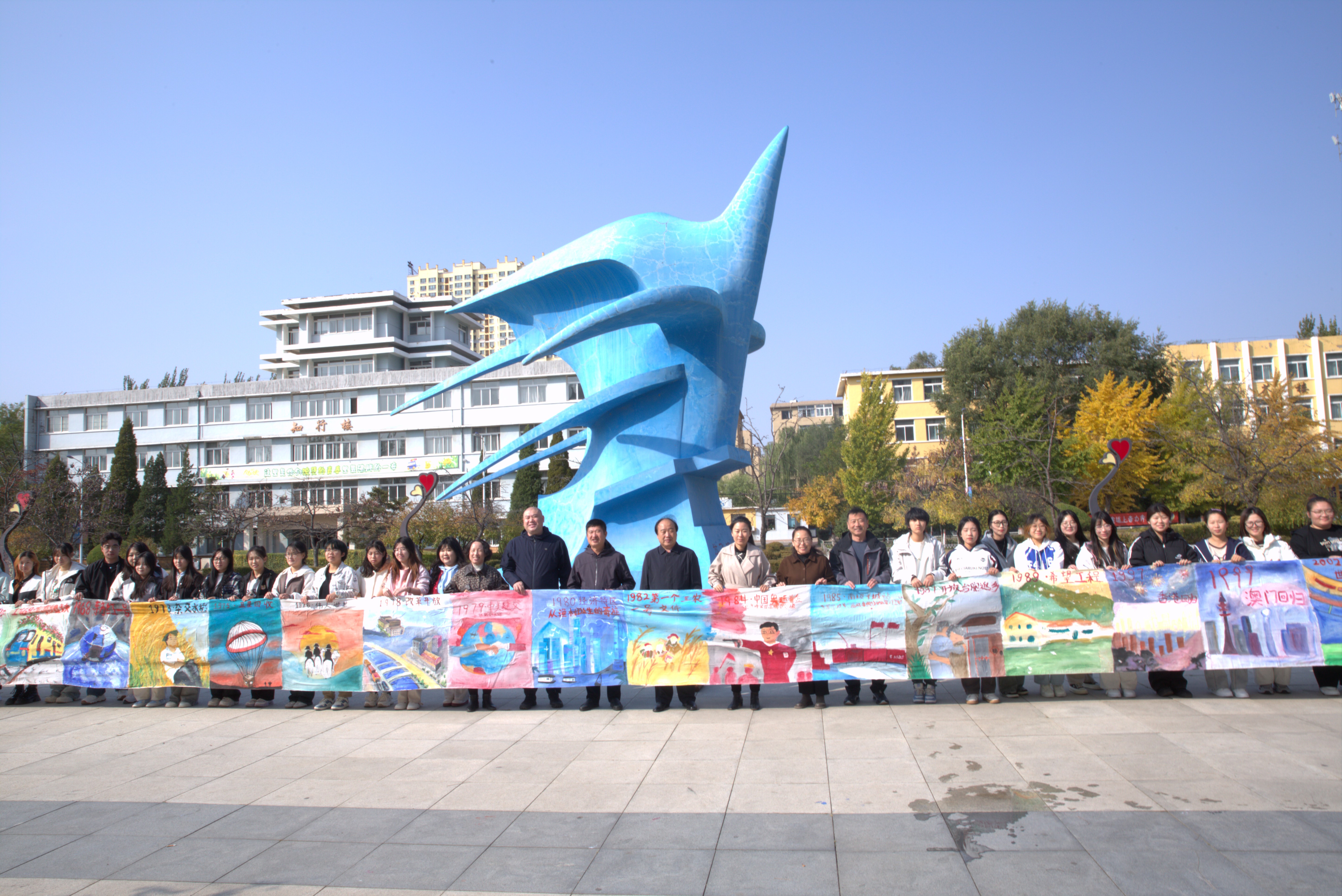 10月16日中午電信系在校休閑廣場(chǎng)完成了中華人民共和國(guó)成立75周年的長(zhǎng)卷繪制,校黨委書記王海鑫,校長(zhǎng)李妮,黨委副書記劉振宇、副校長(zhǎng)魏彤光蒞臨活動(dòng)現(xiàn)場(chǎng)。