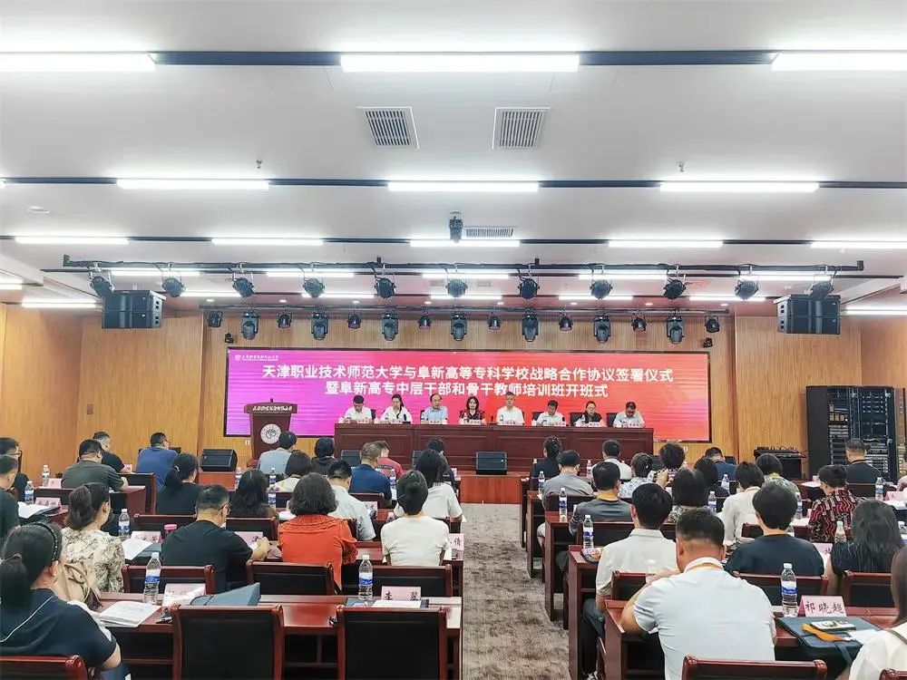 兩校合作簽約儀式上,天職師大副校長蔡玉俊代表天津職業(yè)技術(shù)師范大學(xué)致歡迎辭,他表示,兩校開展戰(zhàn)略合作,是深入貫徹落實習(xí)近平總書記對職業(yè)教育重要指示精神的有力舉措,是服務(wù)教育強國的實際行動,具有重要意義。此次培訓(xùn)班是落實戰(zhàn)略合作的具體舉措,希望通過培訓(xùn),促進(jìn)提升阜新高專中層干部和骨干教師的綜合能力素養(yǎng),加強新時代職業(yè)院校干部隊伍建設(shè),服務(wù)阜新高專高質(zhì)量發(fā)展。天職師大將全力支持阜新高等??茖W(xué)校創(chuàng)辦本科層次職業(yè)學(xué)校。