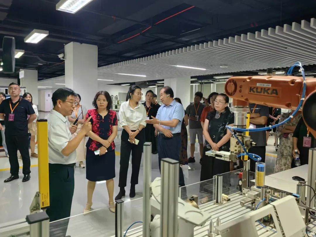 天職師大副校長蔡玉俊為阜新市教育局局長陳曉娟及我校干部教師講解智能制造產(chǎn)業(yè)發(fā)展及工訓(xùn)中心建設(shè)運行情況