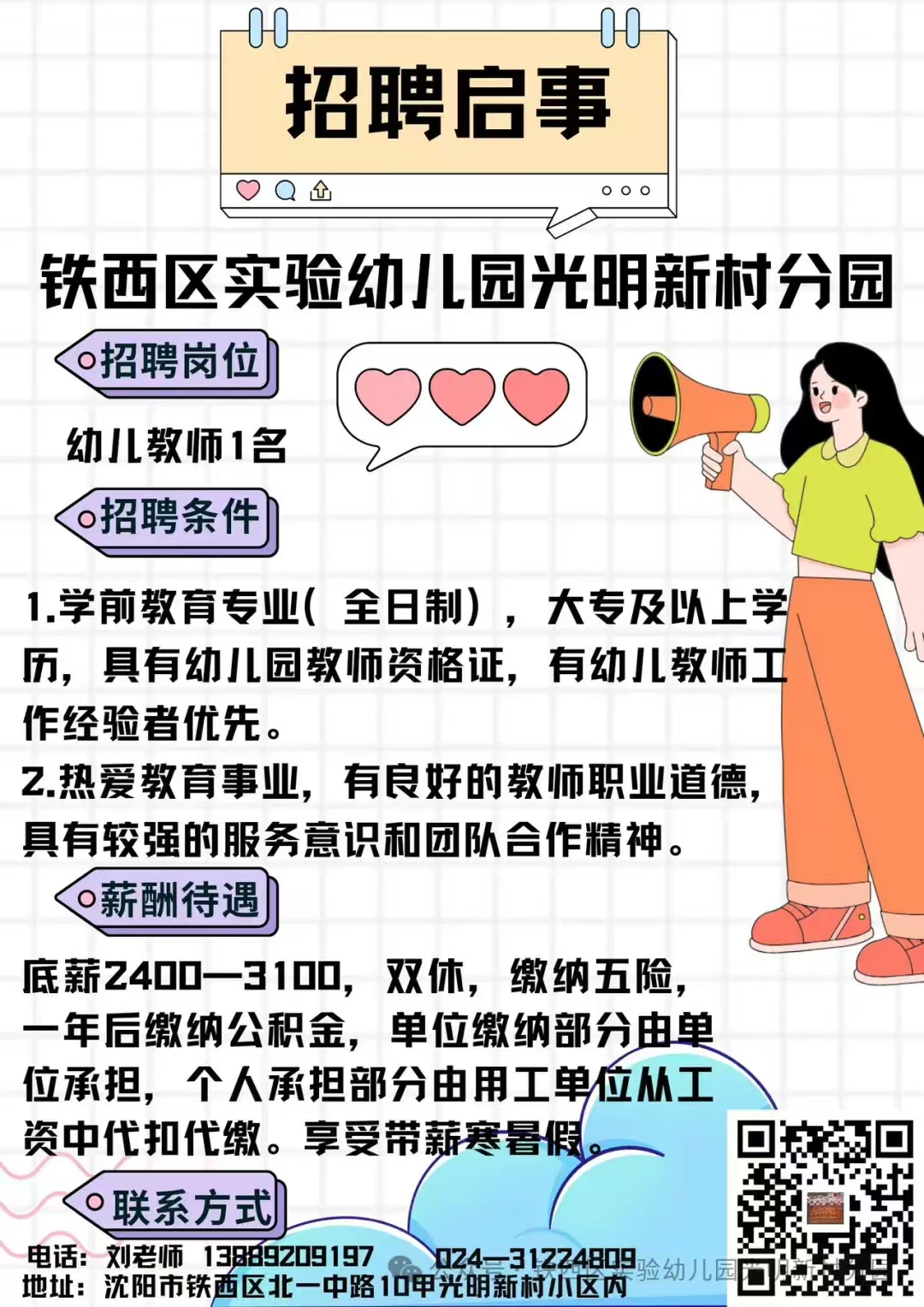 沈陽鐵西區(qū)實驗幼兒園光明新村分園招聘