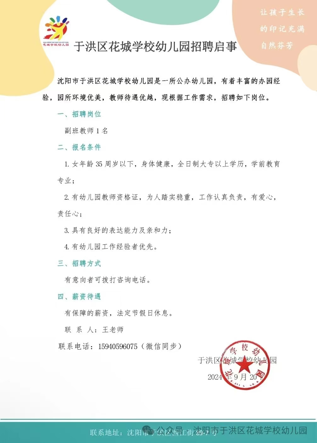 沈陽于洪區(qū)花城學(xué)校幼兒園招聘啟事
