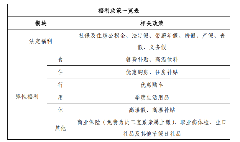 五、享受的主要福利待遇有: