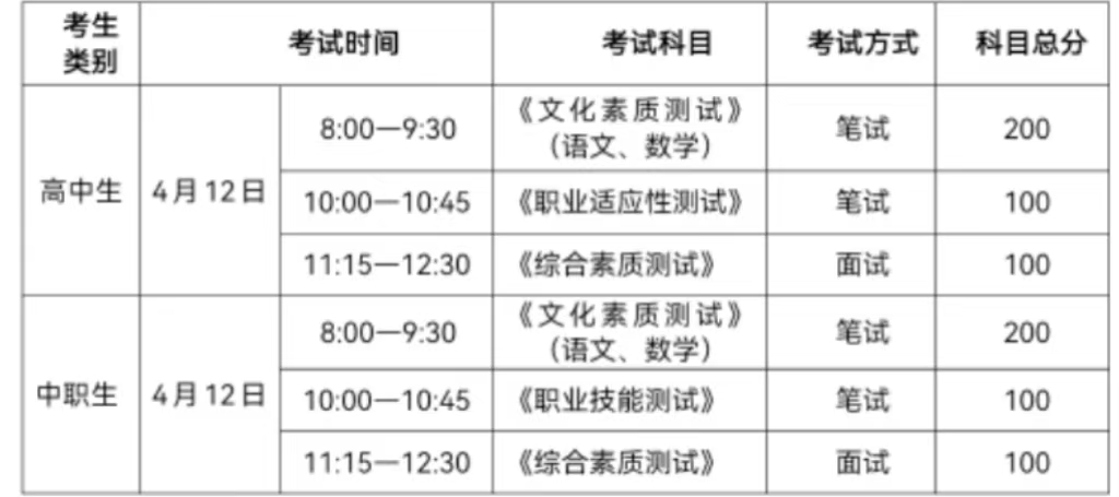 高中考生總成績(jī)相同者,按語(yǔ)文、數(shù)學(xué)、職業(yè)適應(yīng)性測(cè)試單科成績(jī)排序錄取。中職考生總成績(jī)相同者,按專(zhuān)業(yè)技能測(cè)試、文化素質(zhì)測(cè)試單科成績(jī)排序錄取。