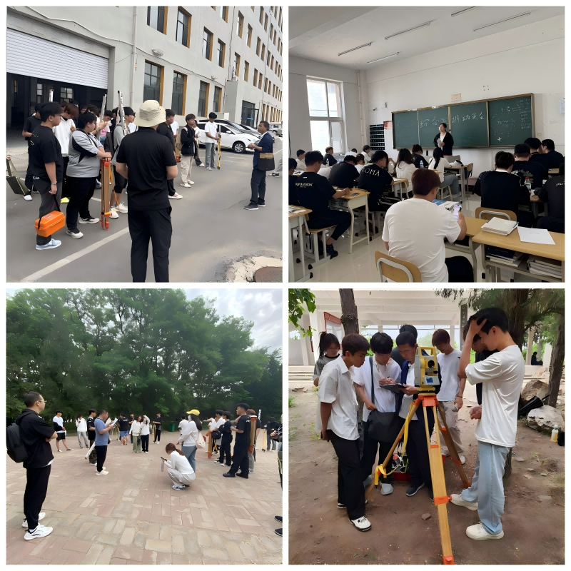 在這個火熱的夏天,我系高職24級道橋和24級建筑專業(yè)共計115名學生,在專業(yè)教師帶領下開展了為期兩周的工程測量綜合實訓。
