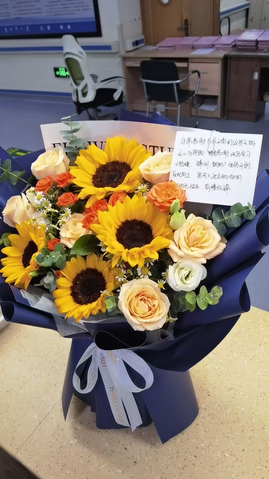 近日,遼寧省蒙醫(yī)醫(yī)院六療區(qū)患者張女士及家屬專程為醫(yī)護人員送來鮮花與手寫感謝卡??ㄆ袑懙溃骸胺浅8兄x白衣天使們這些天的關心與照顧,特意感謝兩位實習小姑娘?。ㄥ\州、朝陽)性格開朗、樂觀向上,愿步入社會的你們陽光快樂、前程似錦!”字里行間滿滿的感動與祝福。一束鮮花,一句叮嚀,凝結了患者及家屬最真摯的肯定。這兩位“實習小姑娘”,就是我校衛(wèi)生健康學院23級護理專業(yè)的實習護士閆碩和李紅晨。